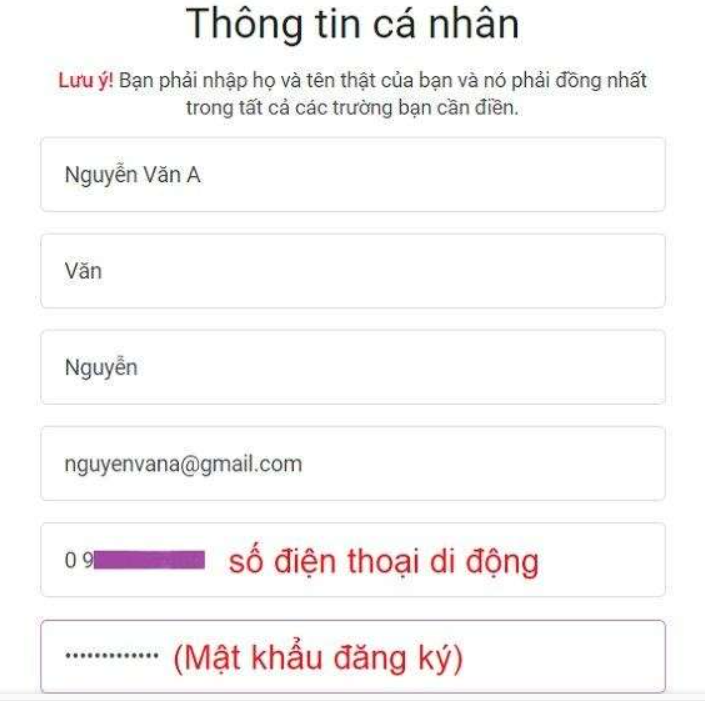 Bước 4: Điền thông tin cá nhân lên trên hệ thống bao gồm: Họ tên, số CMND, địa chỉ, số tài khoản ngân hàng, nghề nghiệp,…