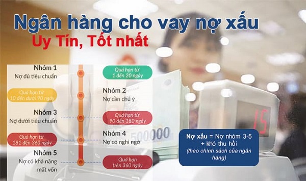Tính đến những quy định hiện nay, nợ xấu được chia thành 5 nhóm theo Tổ chức tín dụng quốc gia Việt Nam:
