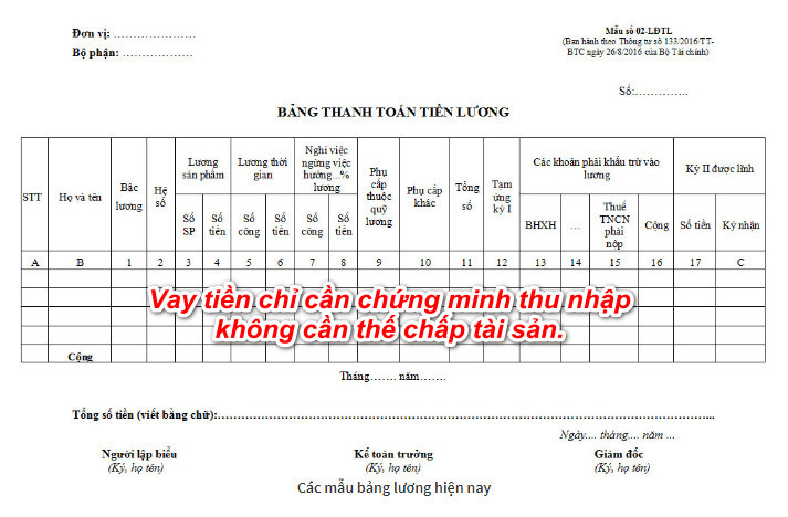 Hồ sơ vay tiền mặt bằng bảng lương